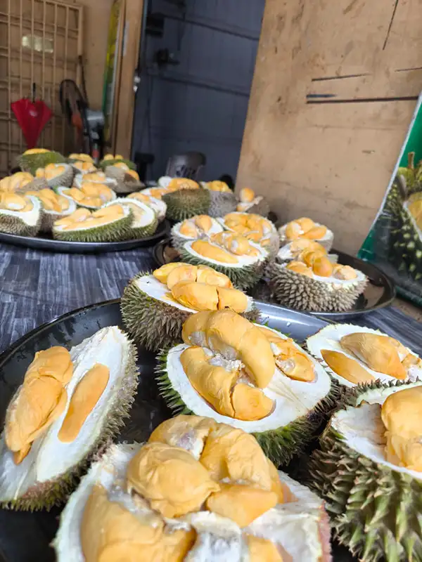 Nikmati pilihan durian popular seperti Musang King, Udang Merah dan IOI yang digemari peminat durian.